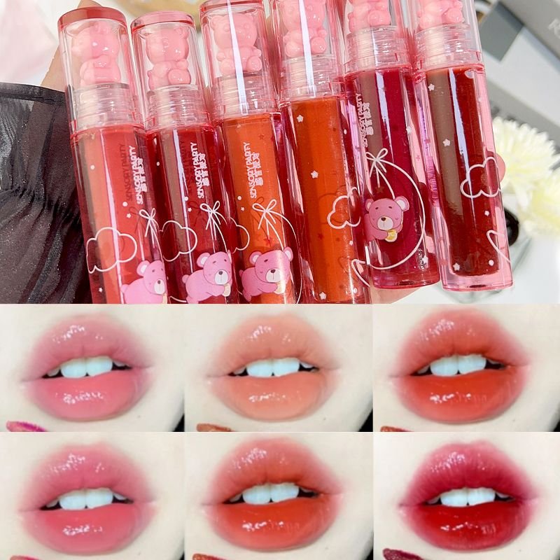 Crystal Glossy Lip Glaze Mirror Cute Bear Lip Gloss Waterproof Transparent Nude Liquid Lipstick Lip Girls Makeup Korean Makeup